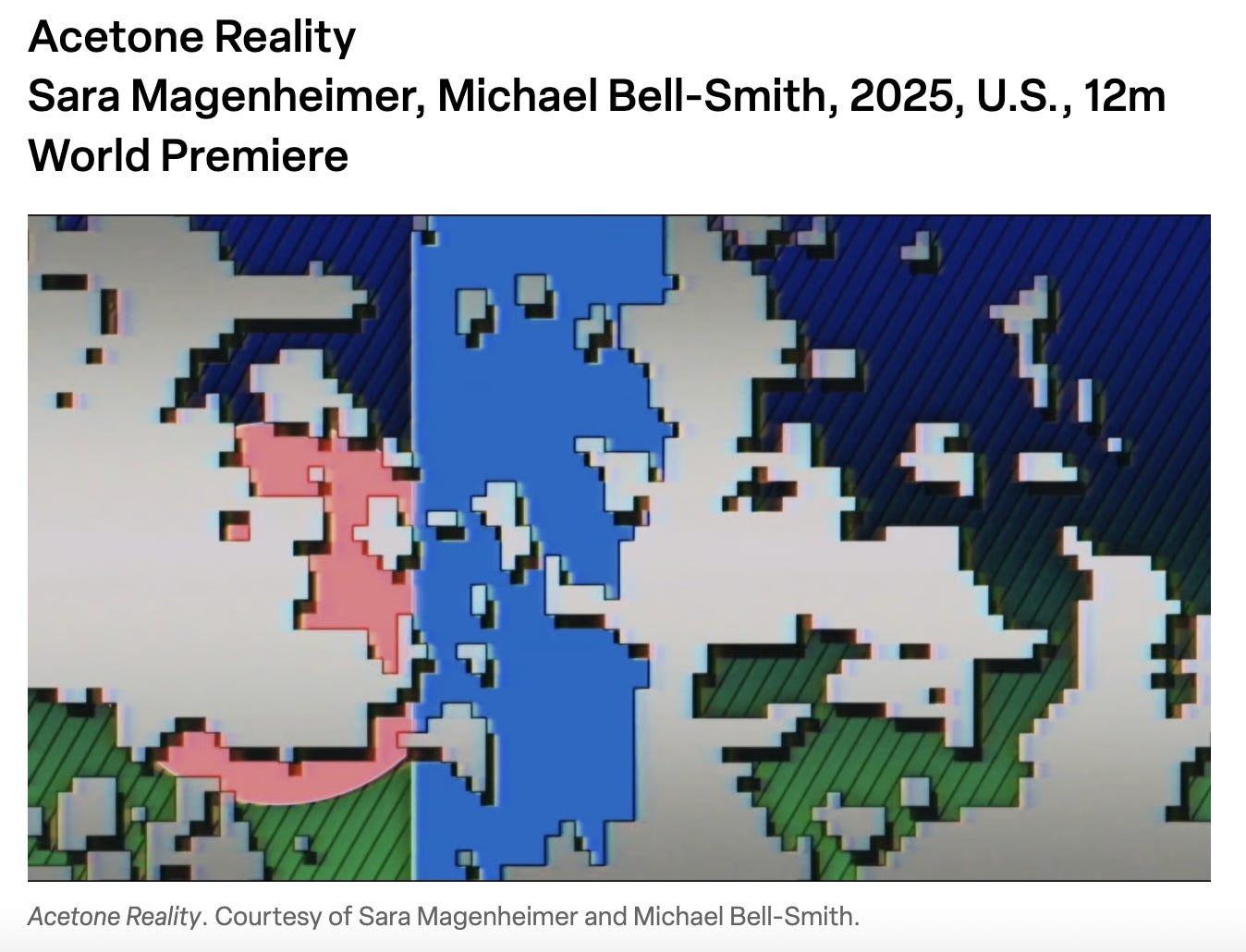 Then on the 4th and 5th of October our video Acetone Reality will premiere at the New York Film Festival. They recently announced the schedule and I want to see everything! Michael Bell-Smith and I made this single channel edit from the 2 channel installation we did at Timeshare in January. Readers of this newsletter may remember the unfortunate timing of this show (wildfires + norovirus), so it feels joyfully recuperative to be able to celebrate this premiere in NYC with friends. We don’t normally collaborate, and may never do it again despite it being very fun this time. We like to leave a party while it’s still good.